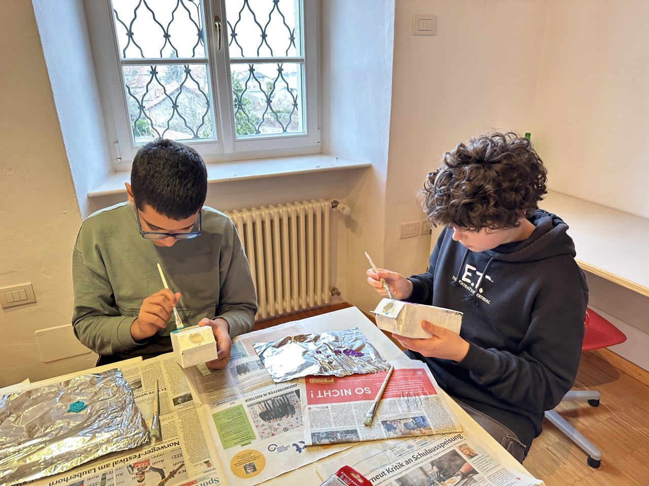 Begleitet wurden wir von den Lehrpersonen Giorgia Postinghel und Patrick Bürgstaller. Dort wurden wir sehr freundlich von zwei Lehrpersonen empfangen, die uns die beiden Projekte vorstellten. Wir wurden in zwei Gruppen eingeteilt. Während die erste Gruppe ein Vogelhäuschen aus alten Milchpackungen bastelte und es kunstvoll verzierte, hörte die zweite Gruppe einen Vortrag zum Thema Schokolade. Im Anschluss an den Vortrag durften wir eine Schokoladenverkostung genießen. Anschließend wurden die Gruppen gewechselt, sodass jeder an beiden Aktivitäten teilnehmen konnte.