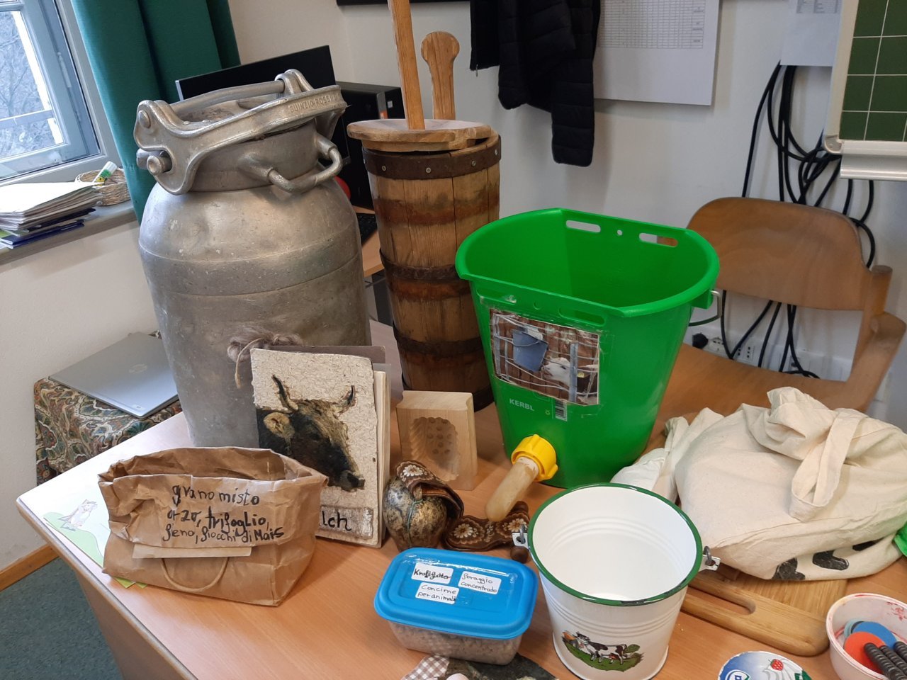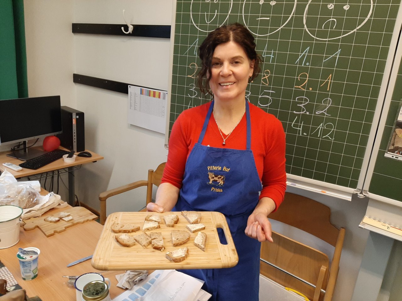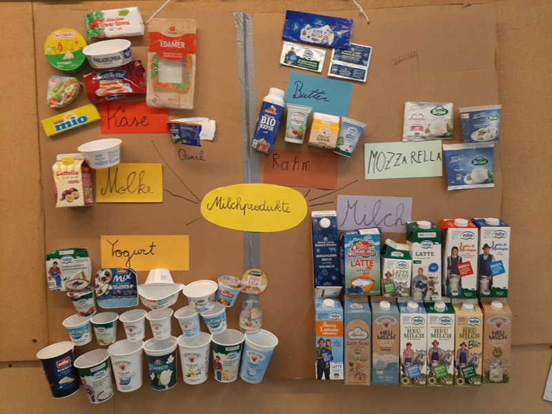 Käse, Jogurt, Mozzarella, Quark, Sahne, Butter… Diese und noch viele weitere Milchprodukte spielten bei uns in den letzten Wochen eine wichtige Rolle. Wie wird Butter hergestellt? Wie kommt die Milch in die Packung und zu mir auf den Tisch? Welche Arbeiten muss eine Bäuerin verrichten? Wie verdaut eine Kuh? Was bedeutet das Südtiroler Qualitätszeichen? Viele Fragen gab es zu beantworten und wir bereiteten uns gut auf den Besuch der Milchbäuerin vor, mit der wir sogar eine Milchverkostung durchführen durften. Fächerübergreifend erarbeiteten wir uns interessantes Wissen über die Milch und schauen jetzt mit geschultem Blick ins Kühlregal.