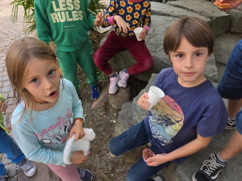 Schon den ganzen Tag über war die Aufregung groß. Endlich stand das gemeinsame Herbstfest der fünf Reformklassen bevor! Am Nachmittag war es dann so weit.Bei strahlendem Herbstwetter spielten die Kinder zusammen auf dem Hof, tobten, lachten und genossen die gemeinsame Zeit mit ihren Freunden. Der Duft frisch gebratener Kastanien lag in der Luft, und das Prasseln des Feuers sorgte für eine besondere Stimmung. Zwischendurch stärkten sich alle am reichhaltigen Buffet, das mit Pizza, Muffins und vielen weiteren Köstlichkeiten liebevoll bestückt war.