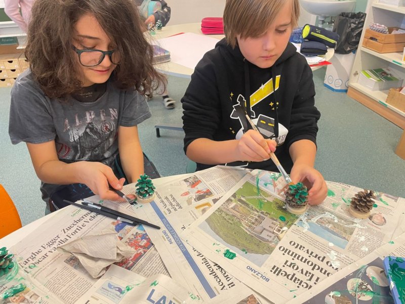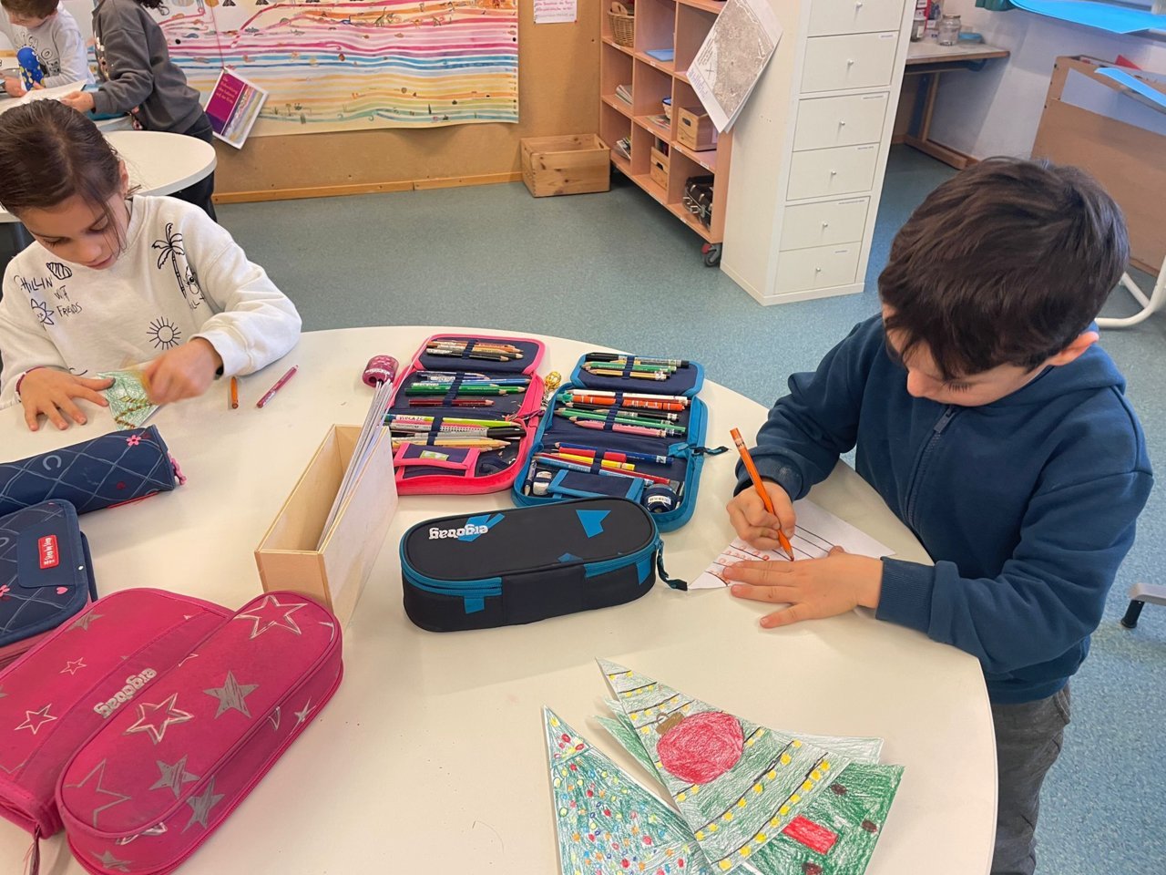 Am letzten Kunsttag verwandelten sich unsere Fachräume in kleine Winterwunderwelten. Unter dem Motto „Winter und Weihnachten“ fand ein kreativer Vormittag voller Glitzer, Farben und Fantasie statt.Drei Stunden lang durften die Kinder an verschiedenen Bastel- und Zeichenprojekten arbeiten. Überall wurde geschnitten, geklebt, gemalt und ausprobiert. Es entstanden funkelnde Tannen-Glitzer-Weihnachtsbäume, liebevoll gestaltete Schneekugeln, fröhliche Schneemänner und wunderschöne Mandala-Weihnachtskugeln in vielen Farben und Formen. Jede Station bot neue Ideen und andere Materialien, sodass jedes Kind etwas Passendes für sich finden konnte.