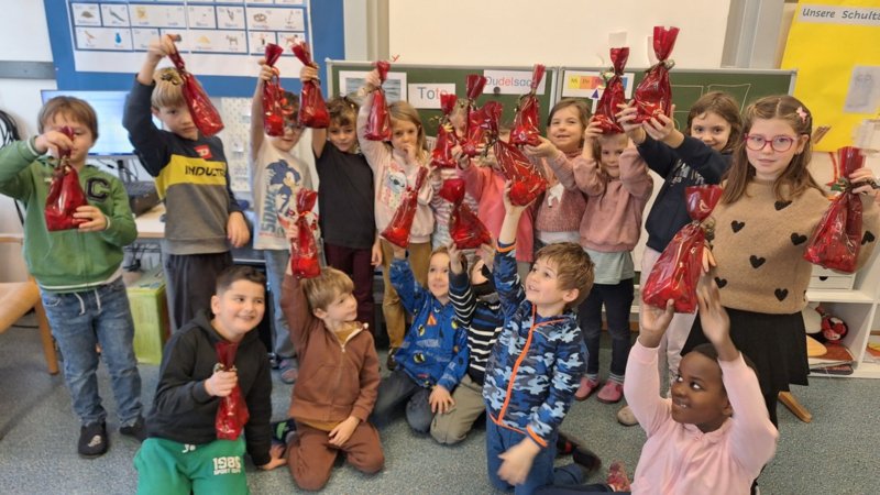 Was für ein aufregender Tag, als der Nikolaus diese roten Säckchen vorbeibrachte und die Kinder der Klasse 1A nach der Pause damit überraschte!