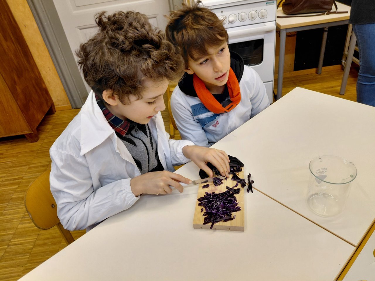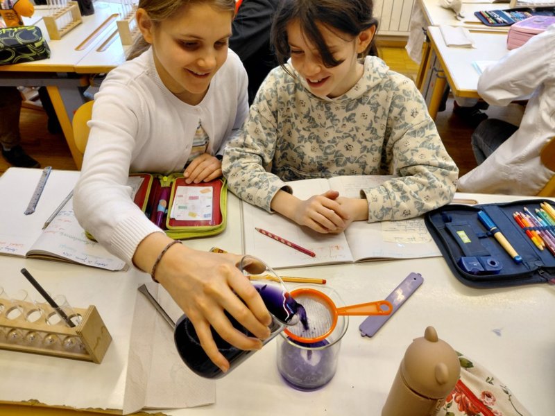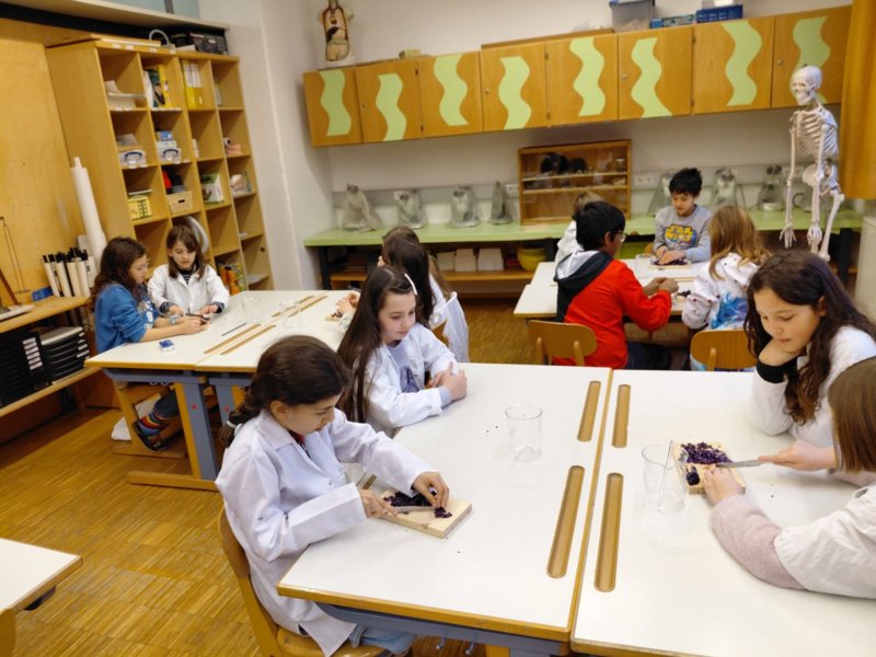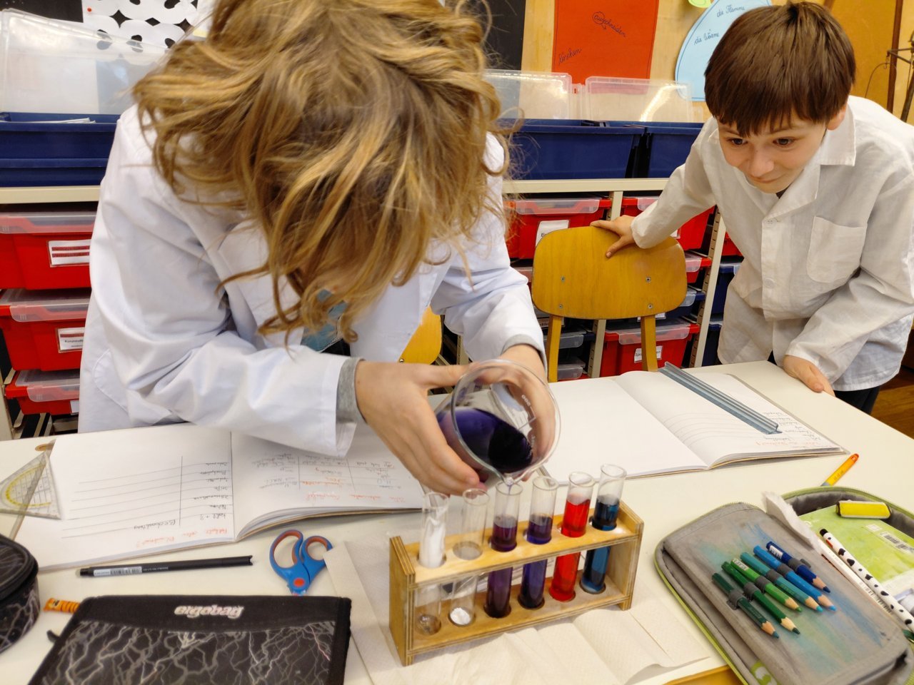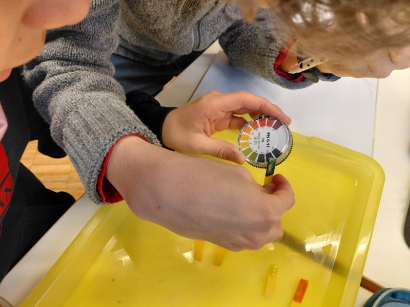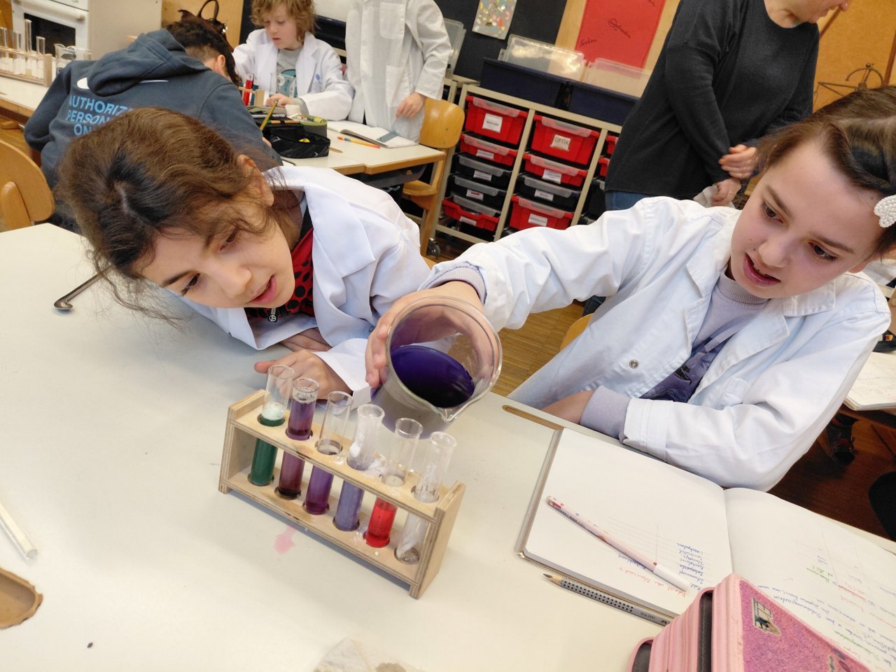In der Faschingszeit ging es auch im Labor bunt zu, als die Farbe des Rotkohlsaftes vielfältig „verzaubert“ wurde.