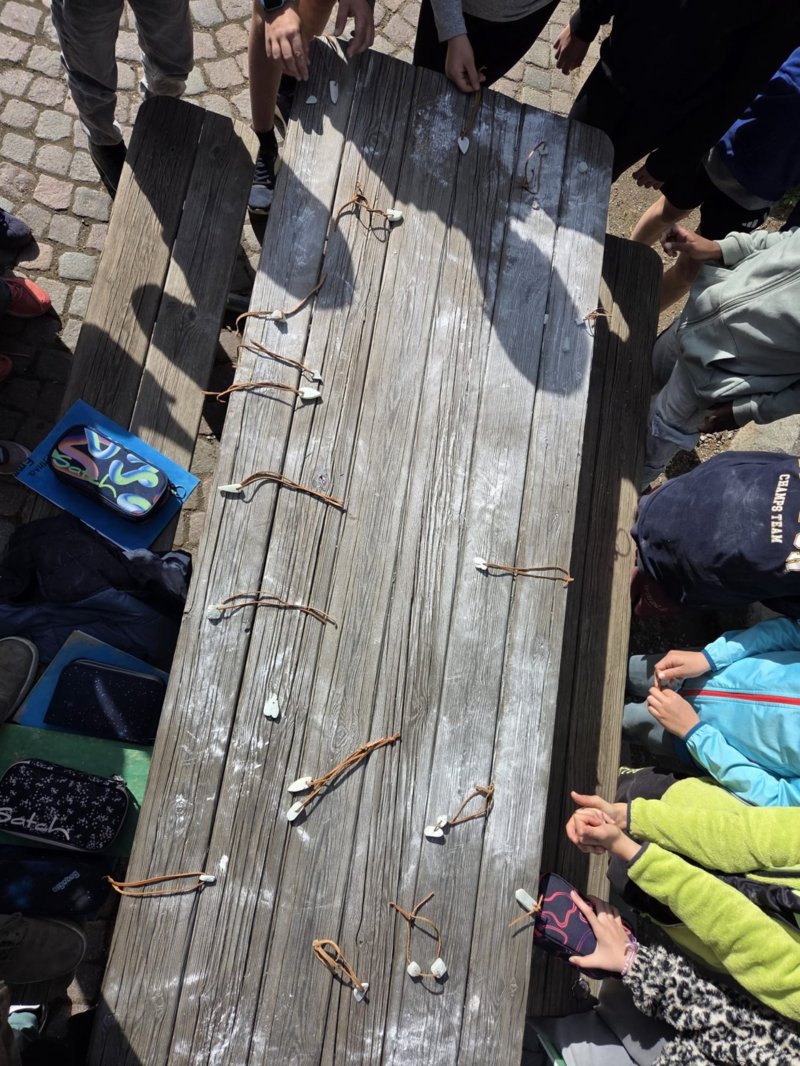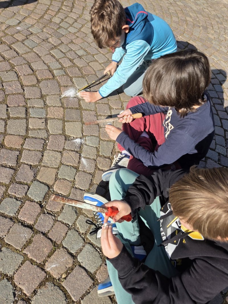 Die Klasse 4C veranstaltete passend zum Thema „Steinzeit“ eine Steinzeitwerkstatt im Pausenhof. Mit viel Geduld bohrten und feilten wir Amulette aus Speckstein. Dabei erfuhren wir auch Spannendes über das Feuermachen in der Steinzeit und lernten, wie vielseitig Feuerstein eingesetzt wurde. Es war ein aufregender und lehrreicher Vormittag für die ganze Klasse.
